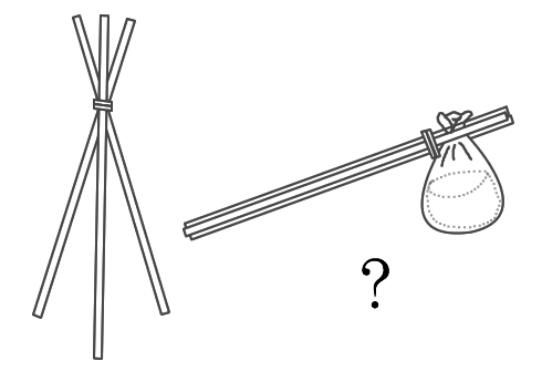 当時、婆羅門の習いとして遊行時に三本の杖(tridaṇḍa)を持つべきことがManusmṛti(『マヌ法典』)に云われていることから、これは前述の編髮や螺髻と同様、婆羅門の習慣を沙門の法として持ち込もうとする者があったのであろう。ここでいう鉢樓がいかなるものか具体的にはわからぬが、おそらくは以下の図のような三本の杖を肩に担い、そこに鉢袋を掛けて持ち運ぶことを言ったものと思われる。▲